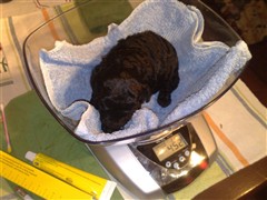 Vägdax: Det var med spänning jag la valparna på vågen. Vågen visade fina siffror.