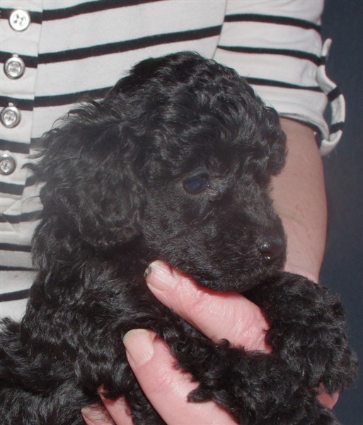 Vikter Kille nr ett - 561 gr, kille två 448 gr, tjej nr ett 496 gr, och så hon som tänker växa upp till en ståtlig storpudel, 625 gr. Hon har ökat med hela 185 gr på en vecka ! Övriga har en ganska jämn ökning med 134, 139 och 140 gr. Dom börjar också röra på sig lite, men mest ligger dom och sover - och jäser. Men det dröjer inte förrän det blir annat liv i lådan.