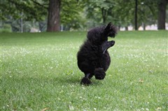 Inte så illa ! Här står hon på alla fyra helt fritt. Lite mindre päls skulle nog inte skada, för att lätta upp henne lite.